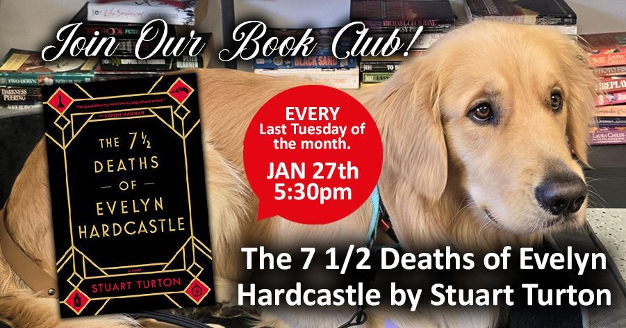 Our January Book Club is diving into The 7½ Deaths of Evelyn Hardcastle by Stuart Turton—a breathlessly addictive mystery that blends the intrigue of Agatha Christie, the drama of Downton Abbey, and the mind-bending twists of Groundhog Day. 🔍✨