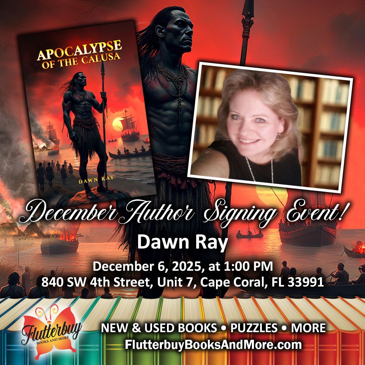 Dawn will be signing her powerful historical novel, "Apocalypse of the Calusa," a vivid, soul-stirring story that brings the little-known and fierce Calusa civilization to life. ποΈβοΈ
